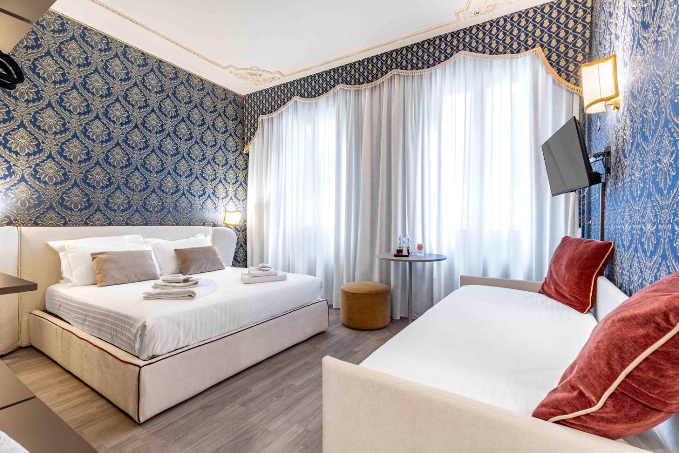 Tutte le camere combinano il patrimonio delledificio con servizi moderni quali TV satellitare, bollitore e minibar. A vostra disposizione un bagno condi cortesia e asciugacapelli.